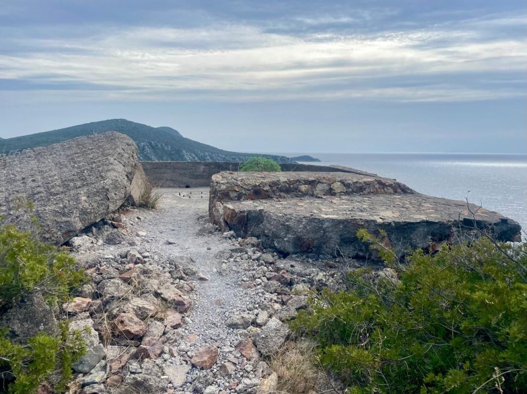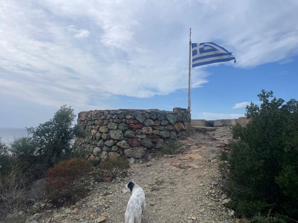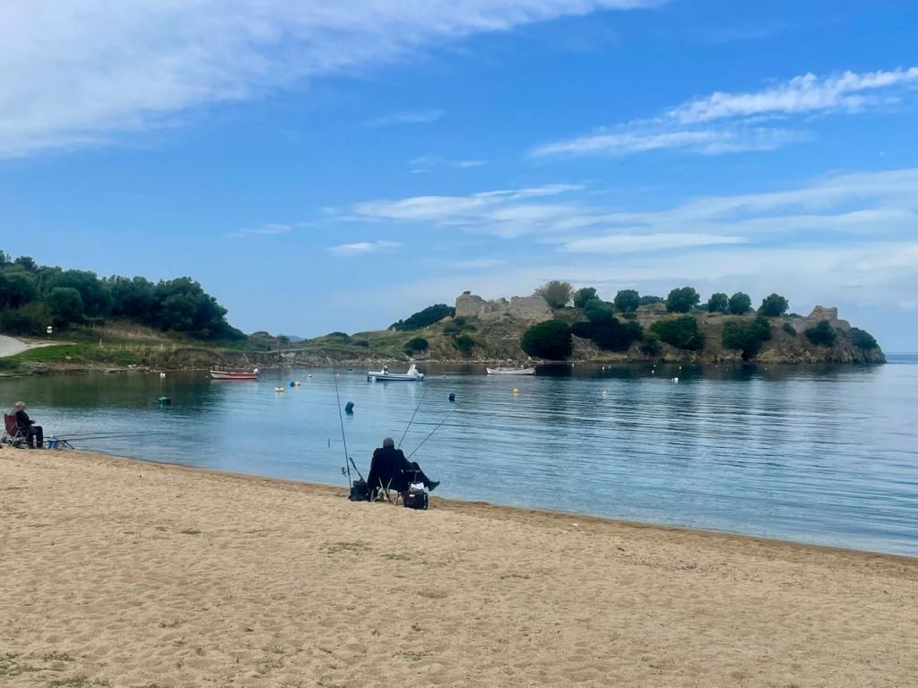 We drove around to the next bay to walk around Toroni castle ruins and then up to the German cannon emplacements. These protected the WW2 German submarines in Porto Koufo.