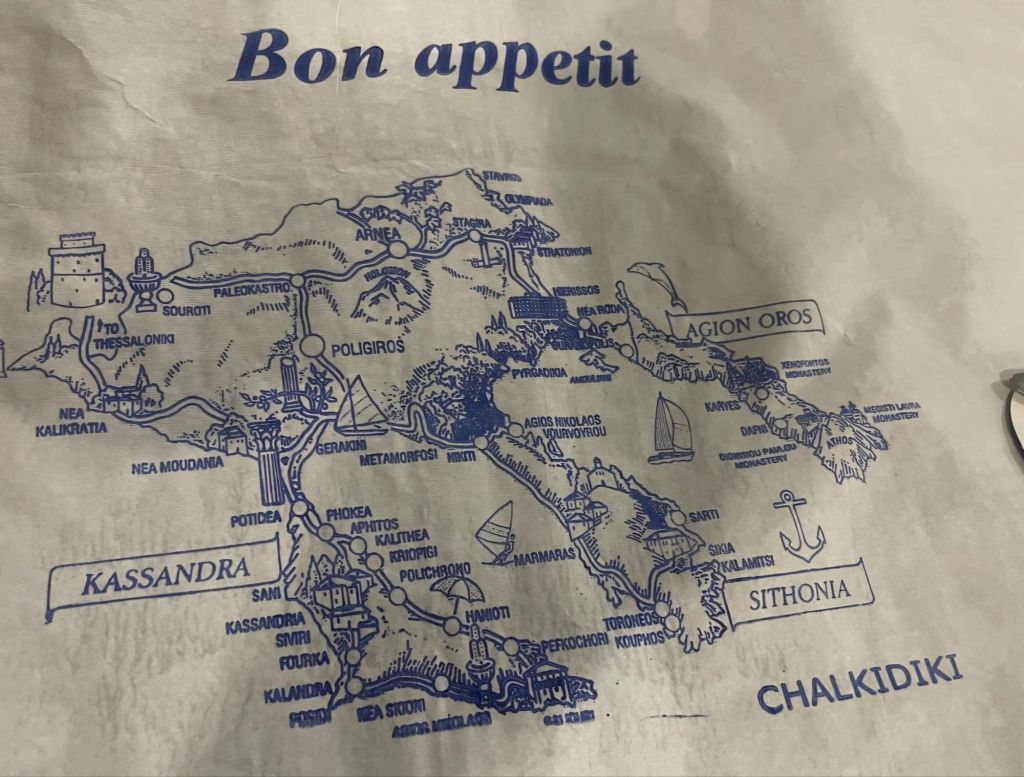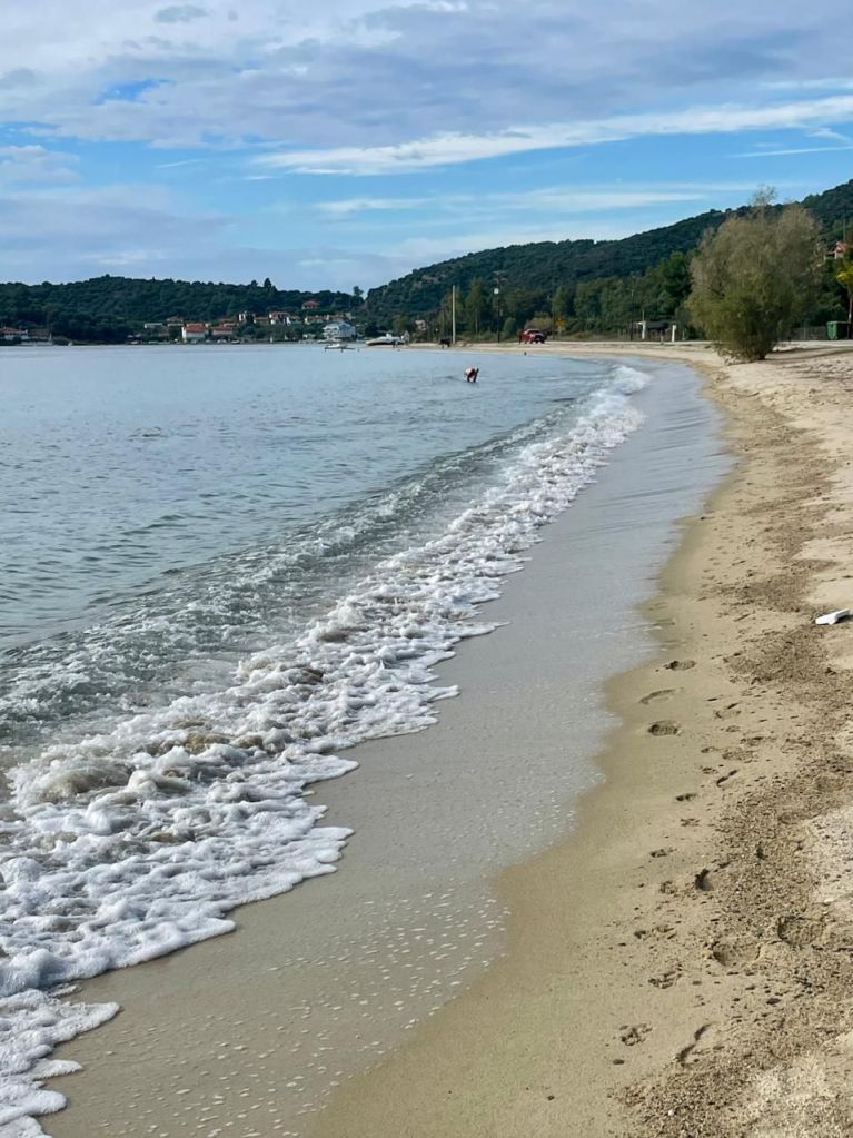 We didn’t drive far to Karydi beach, known for its rocks. It was pretty. Everyone else obviously knew about it too. Lots of German families. It’s school holidays. Something, as an ex-teacher, I’m delighted not to have to think of.