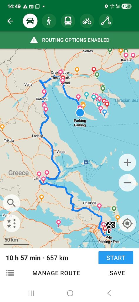 657 km. Over 10 hours. £83.66 in motorway tolls. I could have broken the trip, but now I have a non driving day. Dinner was definitely in the taverna!