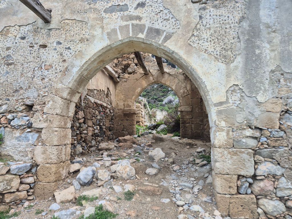 Sina Monastery ruin gave us a leg stretch as access was along a rough track. Believed to be of French origin, but a ruin already by 1882 when Lord Kitchener surveyed Cyprus.  Thieves have taken anything of worth, but it still reveals what a significant place it must once have been.