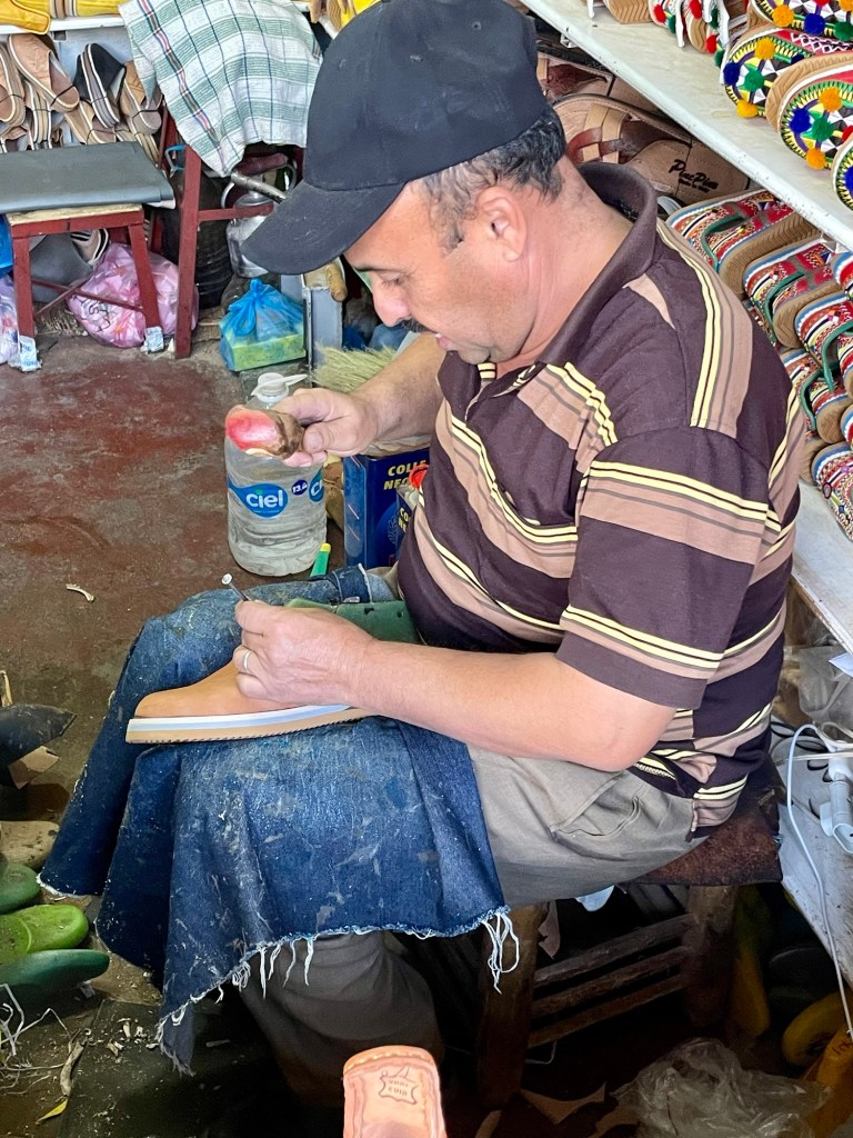 All stalls have the chaps hand making leather shoes. I couldn’t resist. Decorating my 4th pair of Moroccan shoesSalad, soft drinks and 2x chicken, pea and potato stew €8.50! Joined by 6 cats. Corrie just coped.