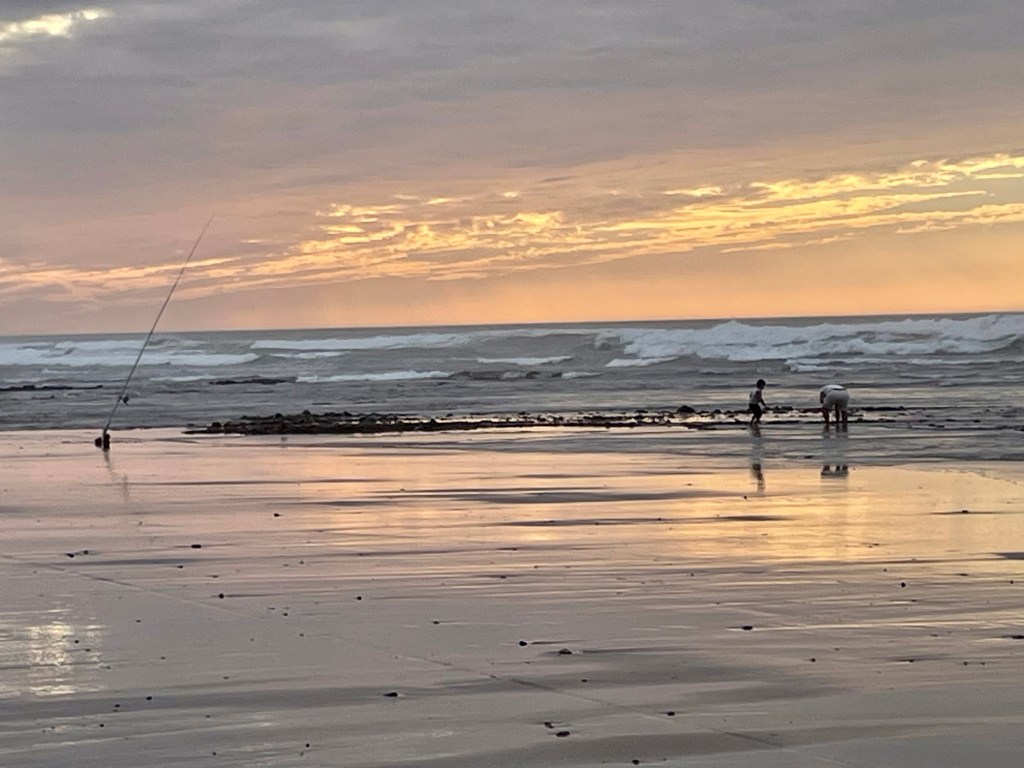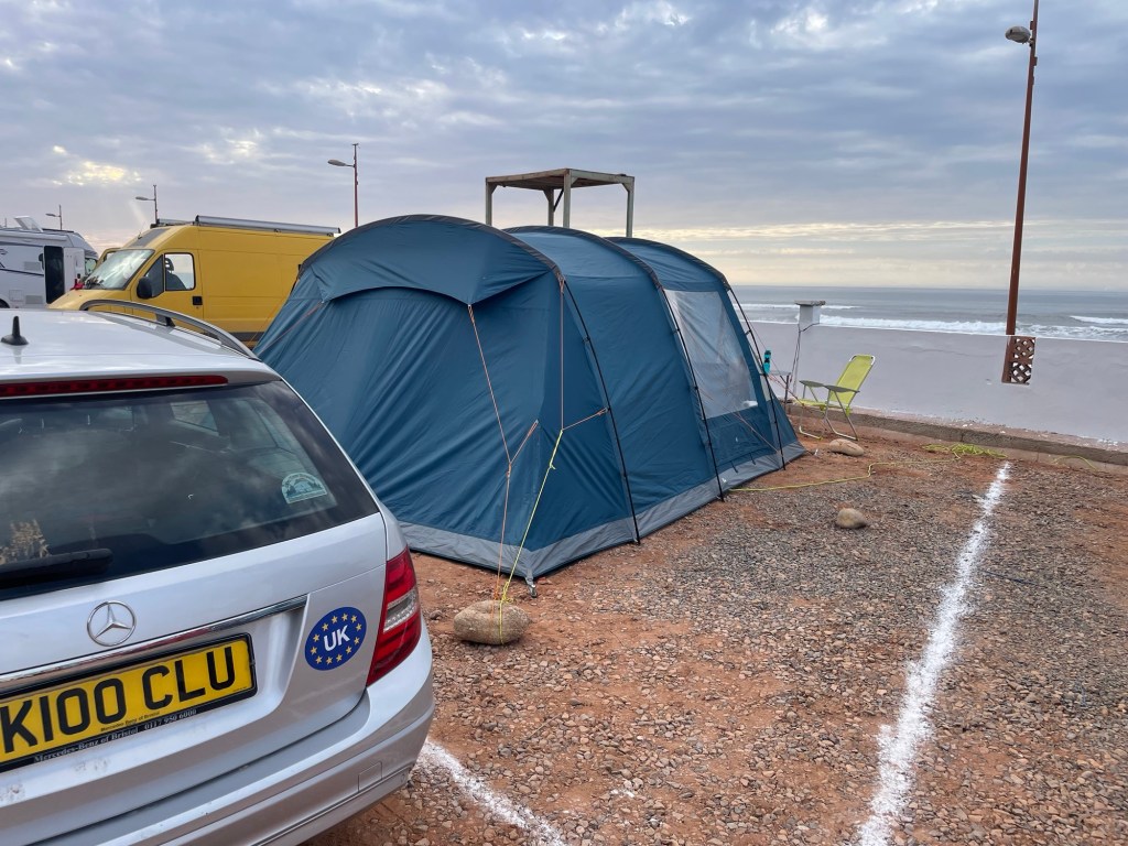 On to Sidi Kaouki. Recommend Camping le Soleil by a few folk. The owner seemed surprised we had a tent, which we managed to erect largely between showers. And the pegs went in due to the day’s rain. Walk on the beach and gin o’clock.