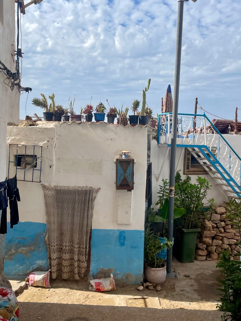 I’d read about a campsite just S of Casablanca in Dar Bouazza. It’s basically a market garden with a small camping area. Yoga lessons 3 x a week too. I thought the ground would be too hard, but we were directed to a corner. A bit wedged inbetween existing campers, one of whom didn’t look too thrilled. But the pegs went in easily and we’ve our own private garden off to the side. Facilites are basic, but at least it’s an European loo!