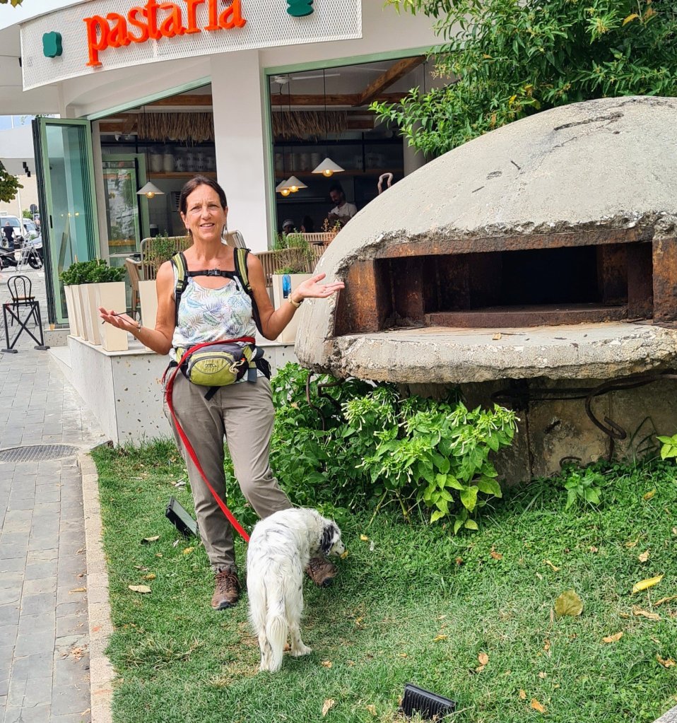 We had been recommended a taverna here. Whilst we are doing these couple of extra weeks on a budget 😆, it is the 2 year anniversary of James’ heart bypass, so a celebration in order. Setting on a pontoon over the water. Tick. Free tables. Tick. Sun shining. Tick. Have each other. Tick. Bugger …. they are not doing food as its the end of the season. Hungry, we stopped at the first restaurant we came to on the way home. OK, but not special.