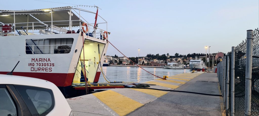 Our ferry from Corfu was not until 7.00 p.m. so we mooched around the town. Had our tyres checked but told we don’t need to replace the front ones as they are new (20 months!), but sold us snow socks €40 to keep us legal in Greece from 31st October. Had a very indifferent lunch… another rip off the tourist place. Shame. And I walked along the sea front whilst J nanny napped in the car.