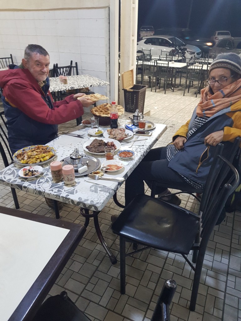 We left the Riad about 11.30 and drove straight to Tangier Med port, arriving at 6 p.m. Exchanged our ticket for a boarding pass for the 11.00 p.m. sailing to Algeciras. Plenty of time to give Corrie a good beach walk and for us to have a good meal out.
