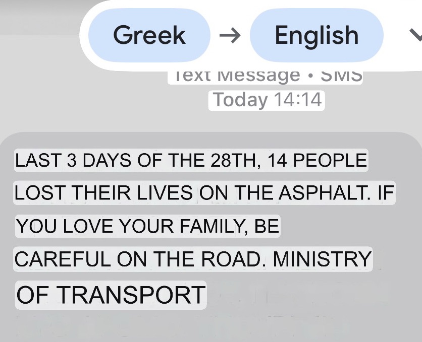 A government notice to our Greek phone. Not sure how I feel about this.