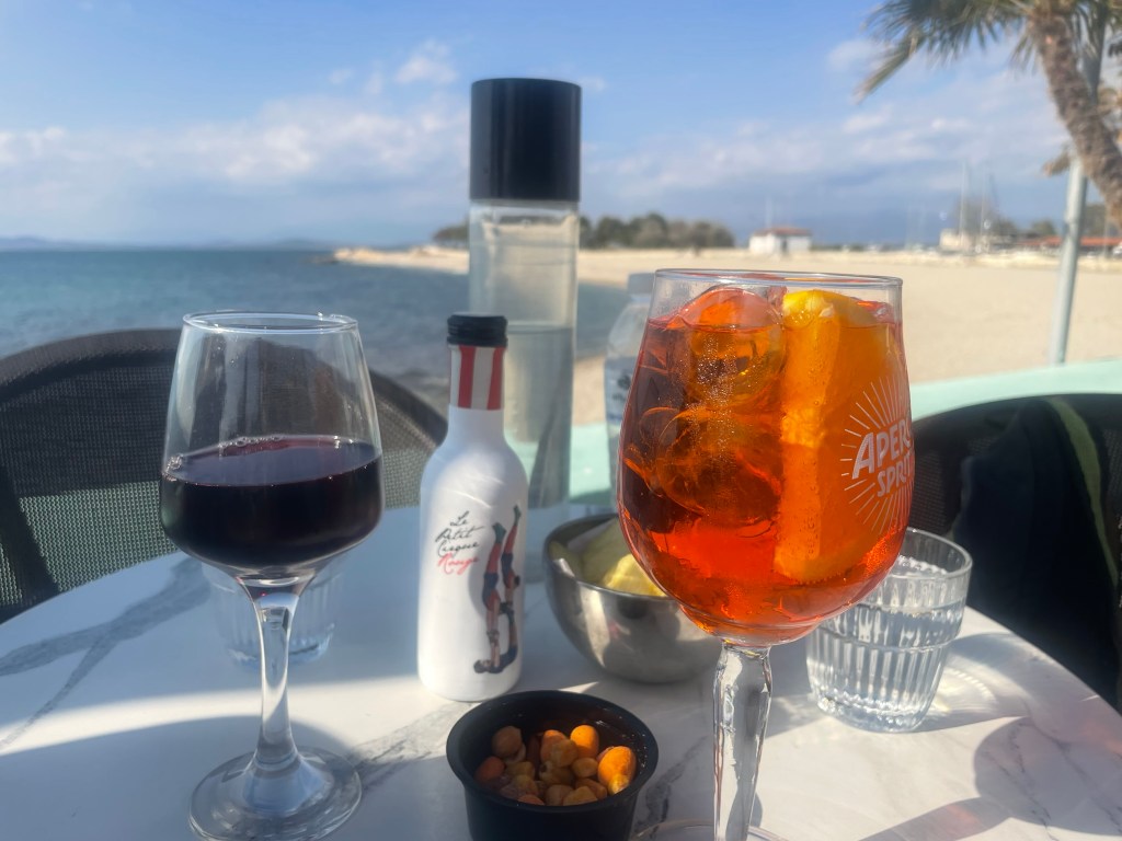 And fell into a bar … a couple of Aperol Spritz for me. Wine for J
