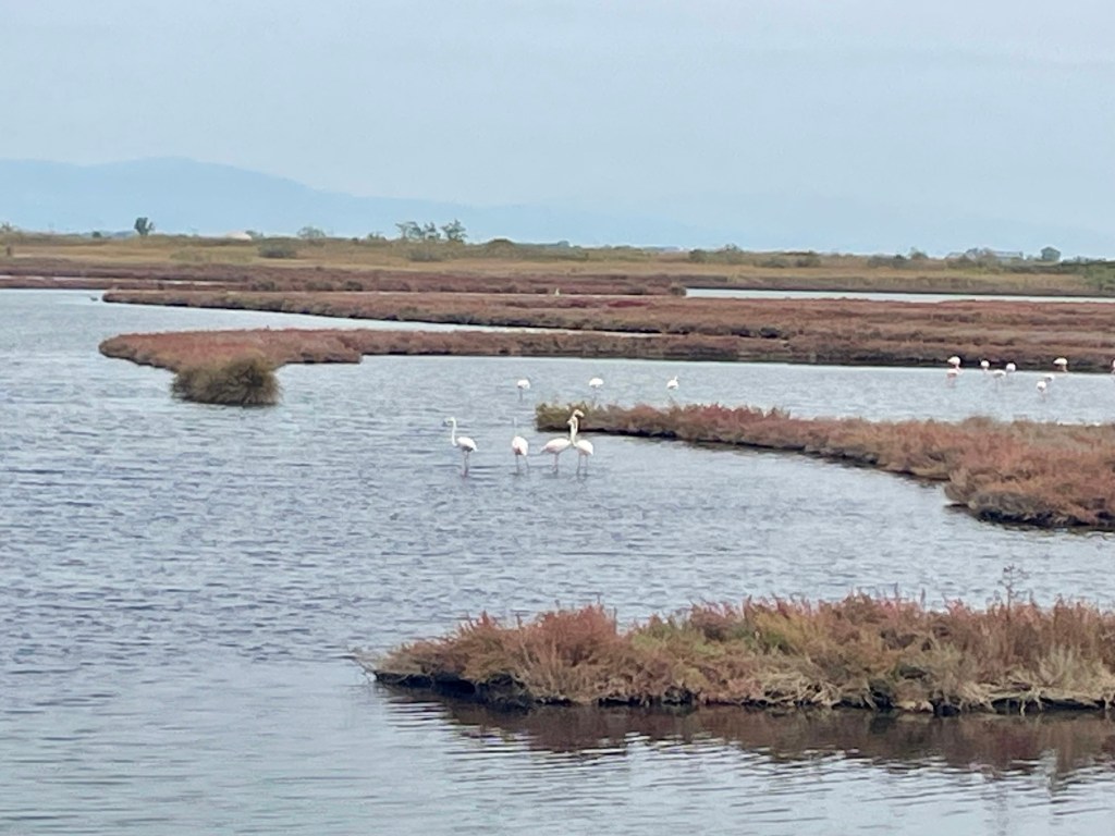 The BG van hogging the spot by the water tap departed, so we were able to use the hose to fill. Said goodbye to Mary and Tony. Quick shop and short drive to between another flamingo lagoon and the sea. Several walks, but limited by the geography. And knitting. But you can have too much downtime. I was a tad bored.