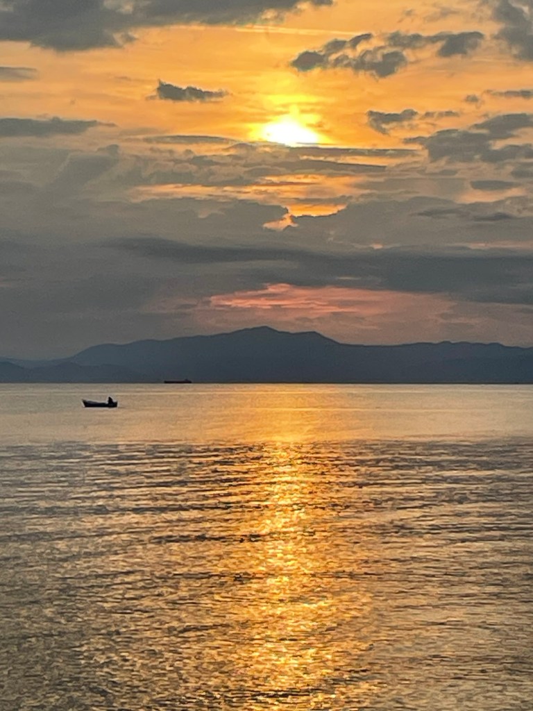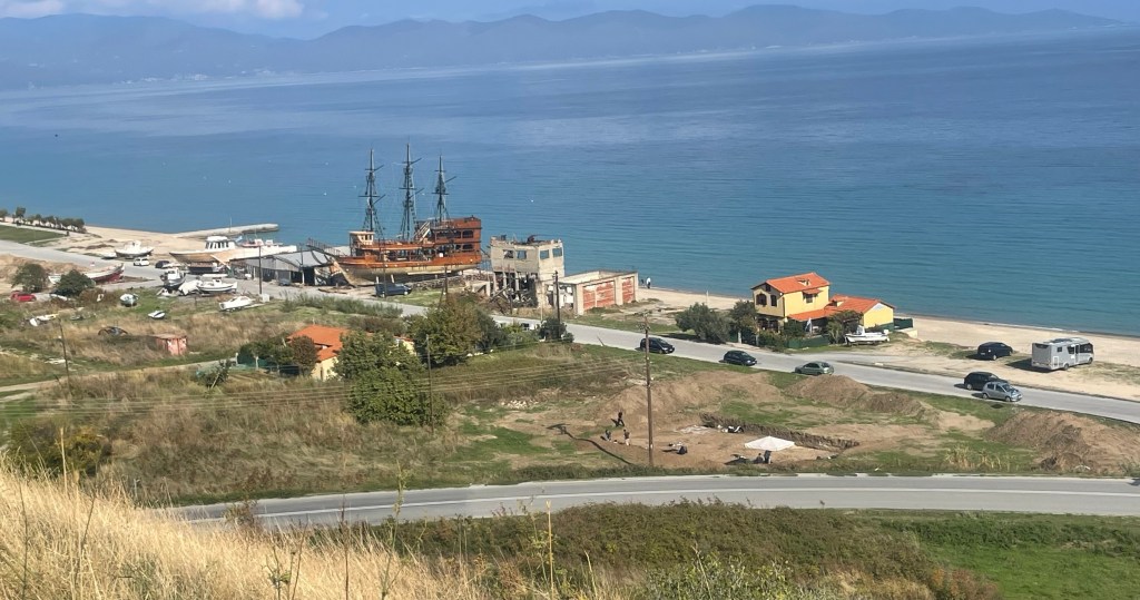 Not having planned spending any time, other than travelling through Greece, I’ve no guide books. We spotted a cruise ship at Kavala across the sea, so googled why it was a cruise stop. Kavala is pretty and an aqueduct that was only decommissioned this century. And an ancient site. So that’s the plan then.