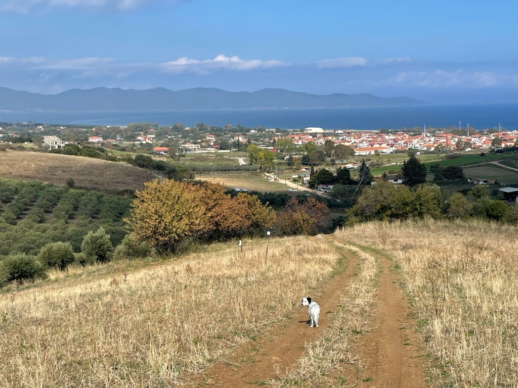 After a leisurely start, we walked over the spine to the other side of the finger. Maps aren’t always correct. Well, they are in that there is a path. But maps don’t show when there is a house, wall, gates and barking dogs. So we had to retrace and divert at one point.