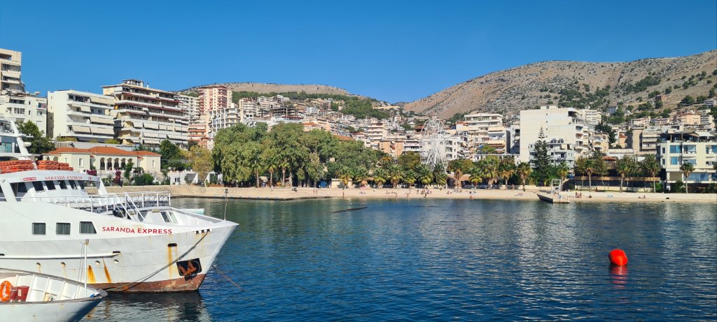 With temperatures at 36C, we sat in the shade. The owner kindly did a coffee and pastry run (with lack of fridge, we’d no food and hadn’t passed any cafes on the way from the port).