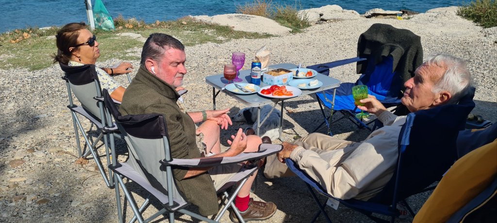 Out to dinner twice. A short early morning walk with friends. So quite social but a lot of unpacking, cleaning and repacking. We collected Jez at 0900 this morning for the final time from his private parking. Loaded. Had a late taverna lunch.