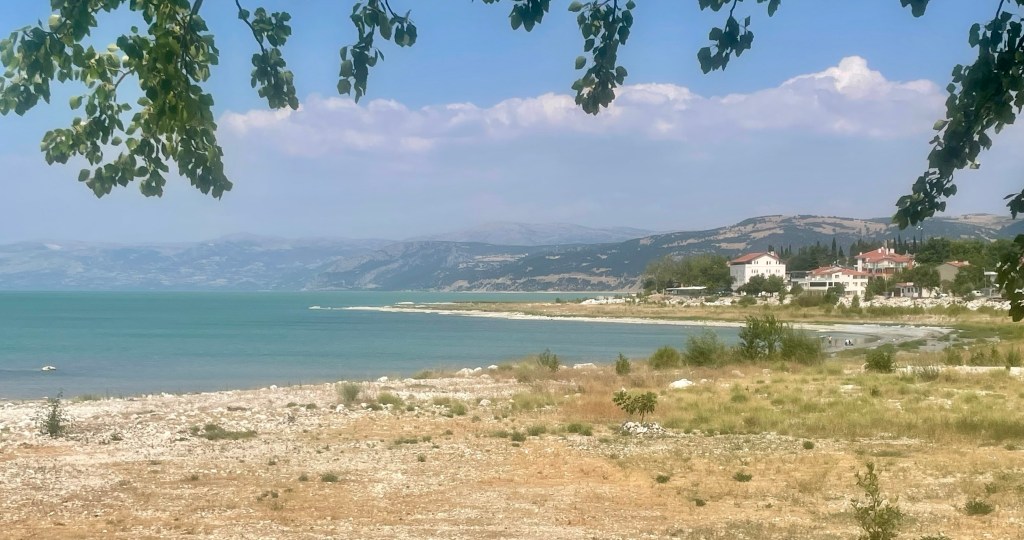 Several wild camping sites passed – not proper access – too steep. Eventually settled on the lakeside near Egirdir – lovely. Walked Corrie – no wild dogs or cats – ice cream and ‘shiy’ – Turkish tea…