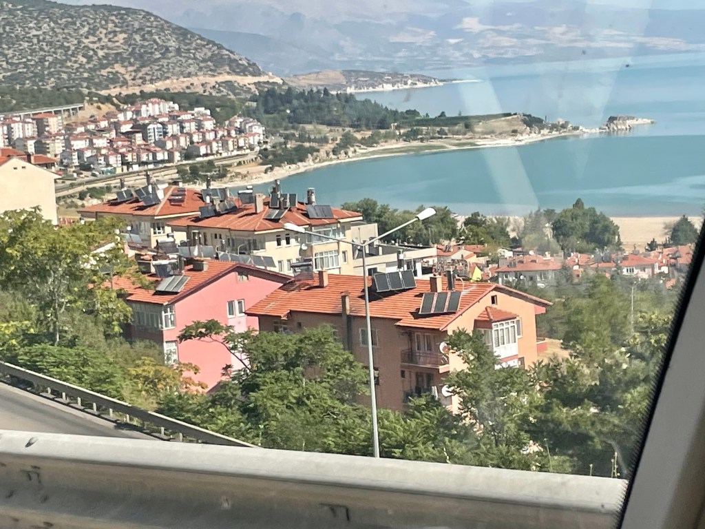 Back to the lakes on very quiet highways. Two hours brought us to Beysehir and a lovely lakefront spot for the night. Lunch Al fresco – a windy walk – iced tea, orange juice and ice cream! Now for some warmish wine and chilling. “Tesiculer” – maybe thanks in Turkish?