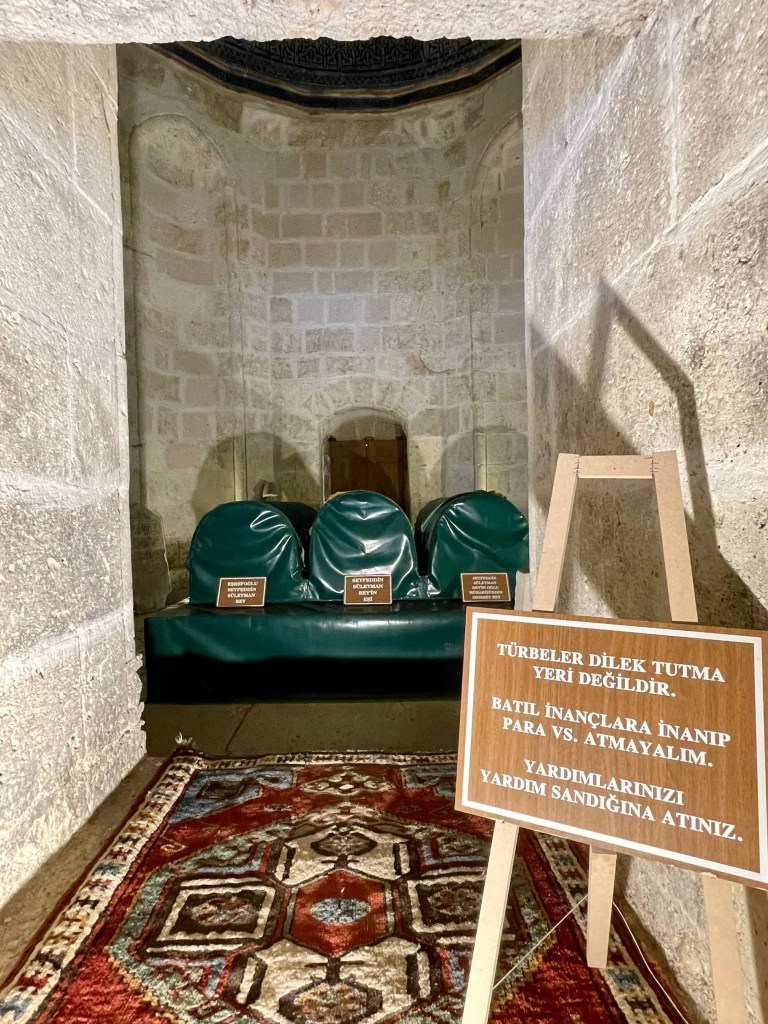 Love the sign, it translates as “Tombs are not places for making wishes. Let’s not believe in superstitions and throw money. Put your donations into the aid fund!