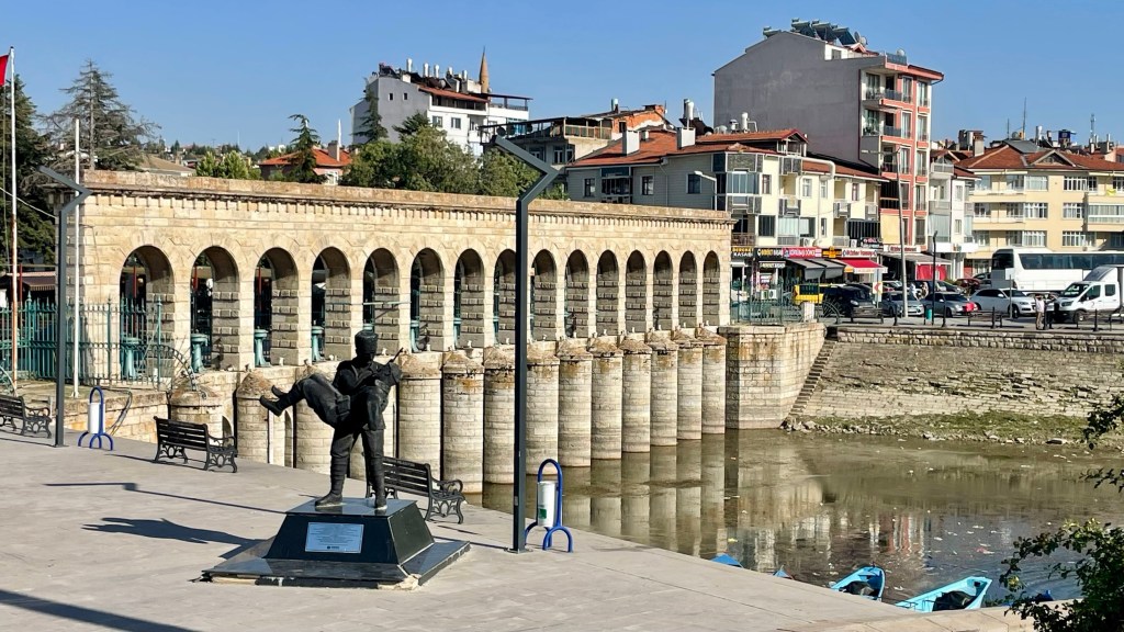 Morning up earlyish – sadly lots of rubbish left by the people barbecuing last night. K did some litter picking – she did lots of clothes washing – our old twin tub half working (spinner only) but showing its age – it doesn’t owe us anything. Before leaving, we completed the Motorhomers ideal – fresh water, empty wc and empty grey waste! We also showered ourselves… On the road continuing our travels in Turkey’s Lake District – nothing like Cumbria but quite impressive – clouds in the sky for a change! It must not rain – as our windscreen wipers are bankjaxed! You Irish will know this word…