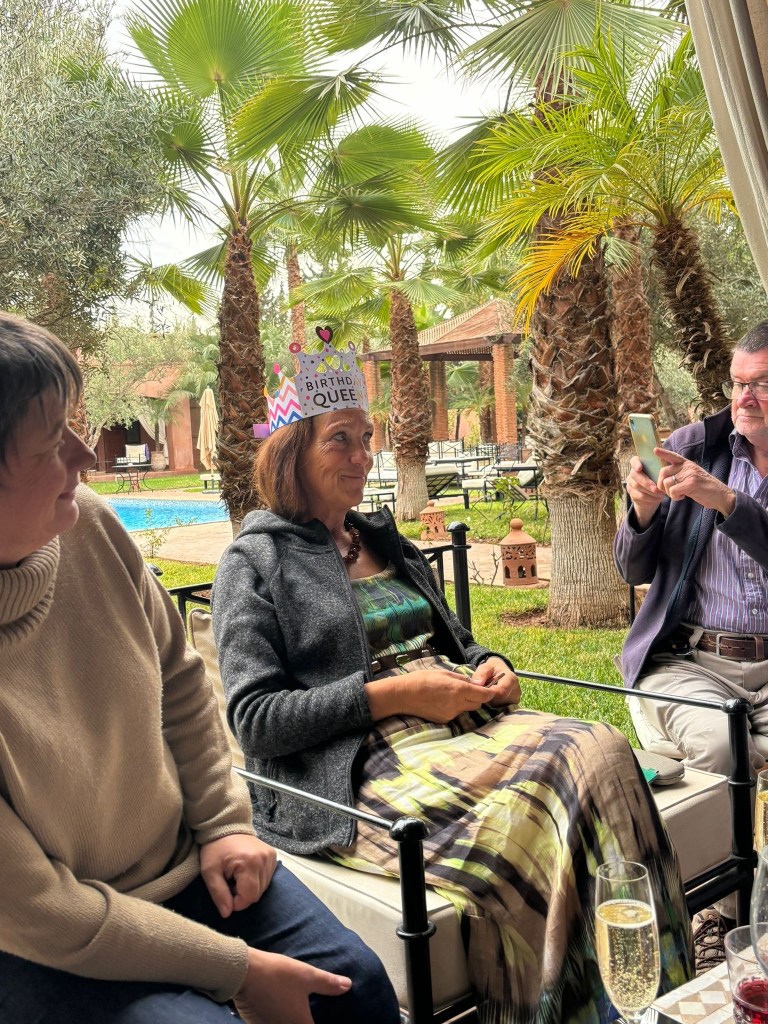 I was made a real fuss of for my birthday. Gifts, which I’d not expected, as folk coming over was gift enough. I am truly blest with my family. We had the Riad cook for us … best of Moroccan food.