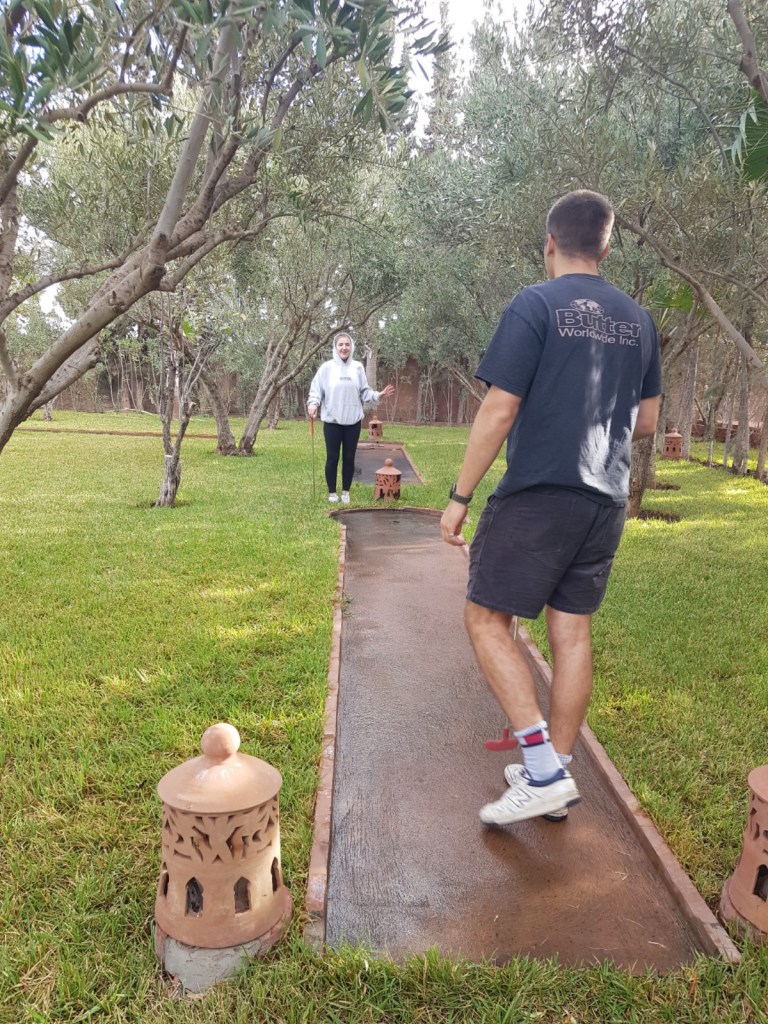 The Riad had lots to do. Louis and Ellie both plunged in the pool. Then straight out. Four of us had a massage. Gran did well in the pétanque competition. Clare gave up on tennis as her knees gave up. Table tennis. And Chris had a minor meltdown on the mini golf. Lots of board games. The Riad was so relaxing, even the next generation weren’t bothered about spending time in the city centre.