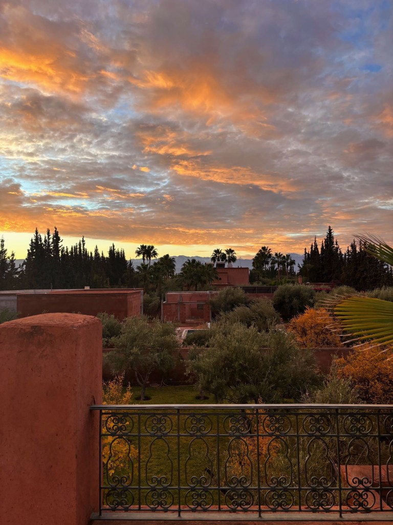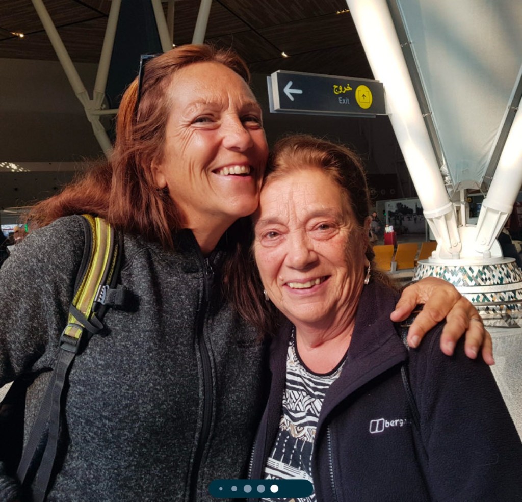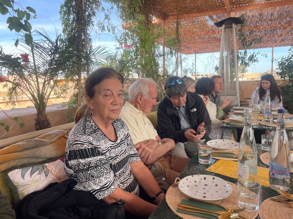 Kerstin and I took a full car load from our apt to the Riad, which we’ve booked for my 60th birthday. Gated entrance. Long driveway. Staff assisted with unloading. We didn’t have time to look around but the vibes were good. Back to the apt to collect Corrie and James and onto the airport to greet family, all arriving on the same flight.