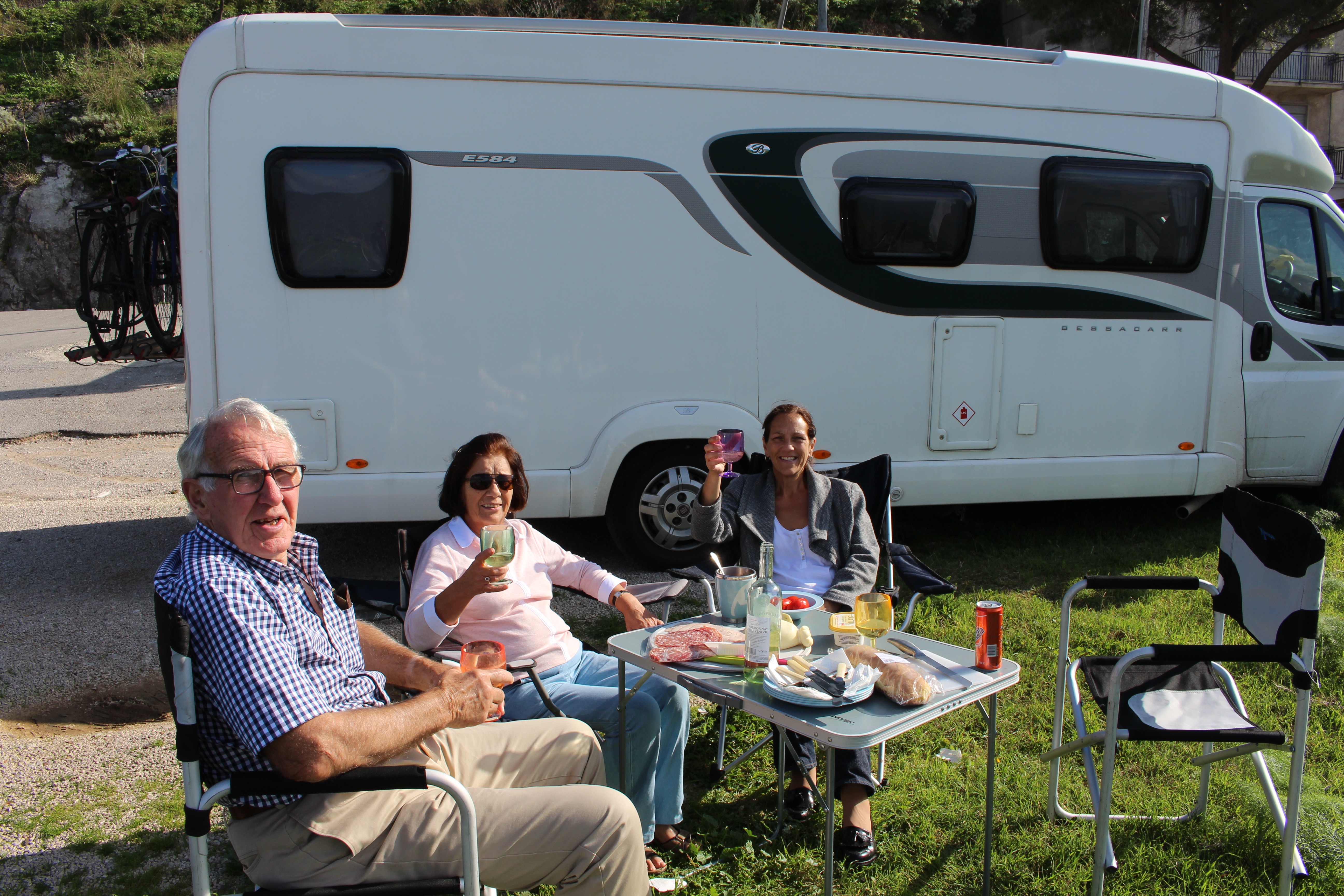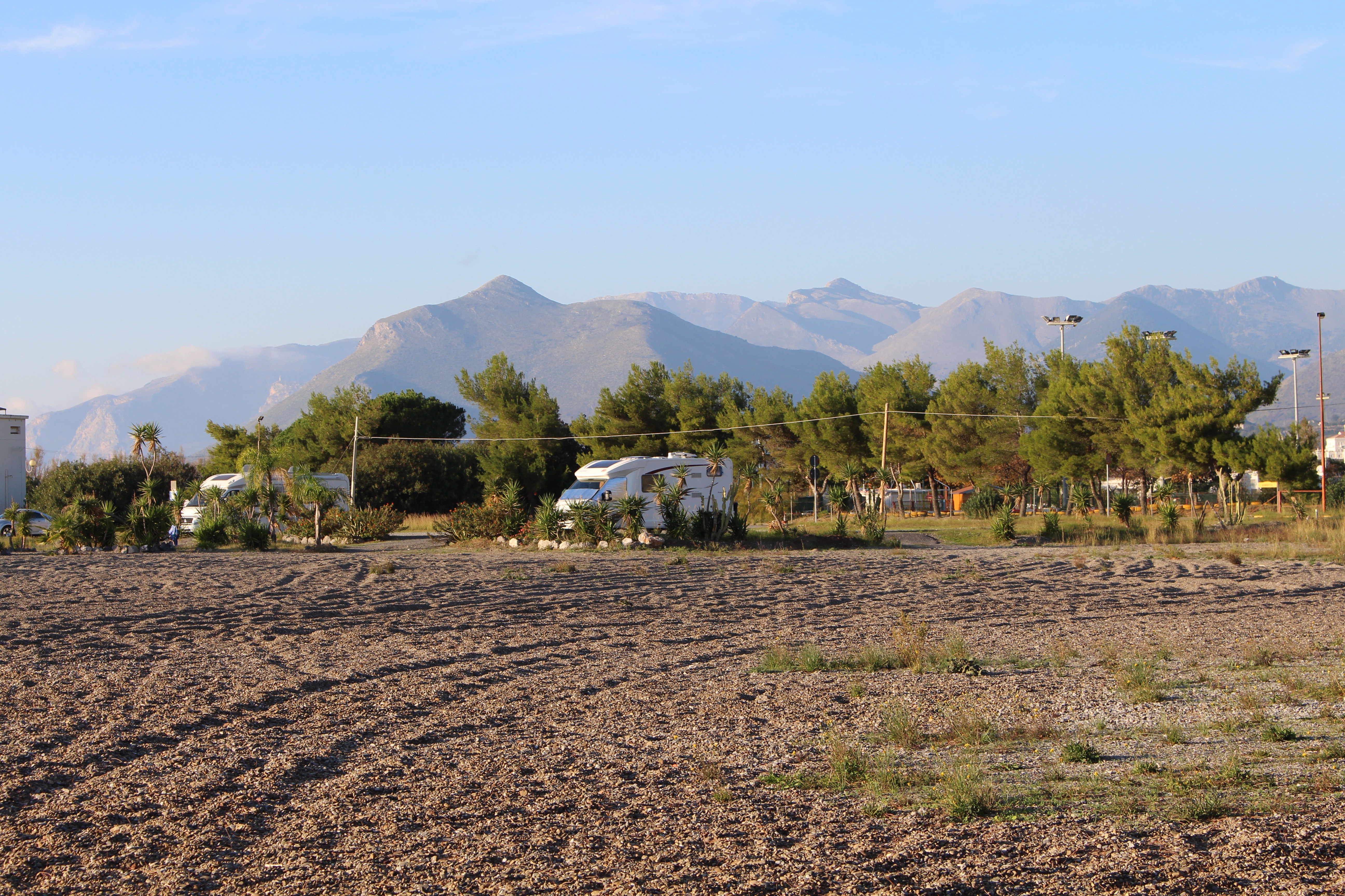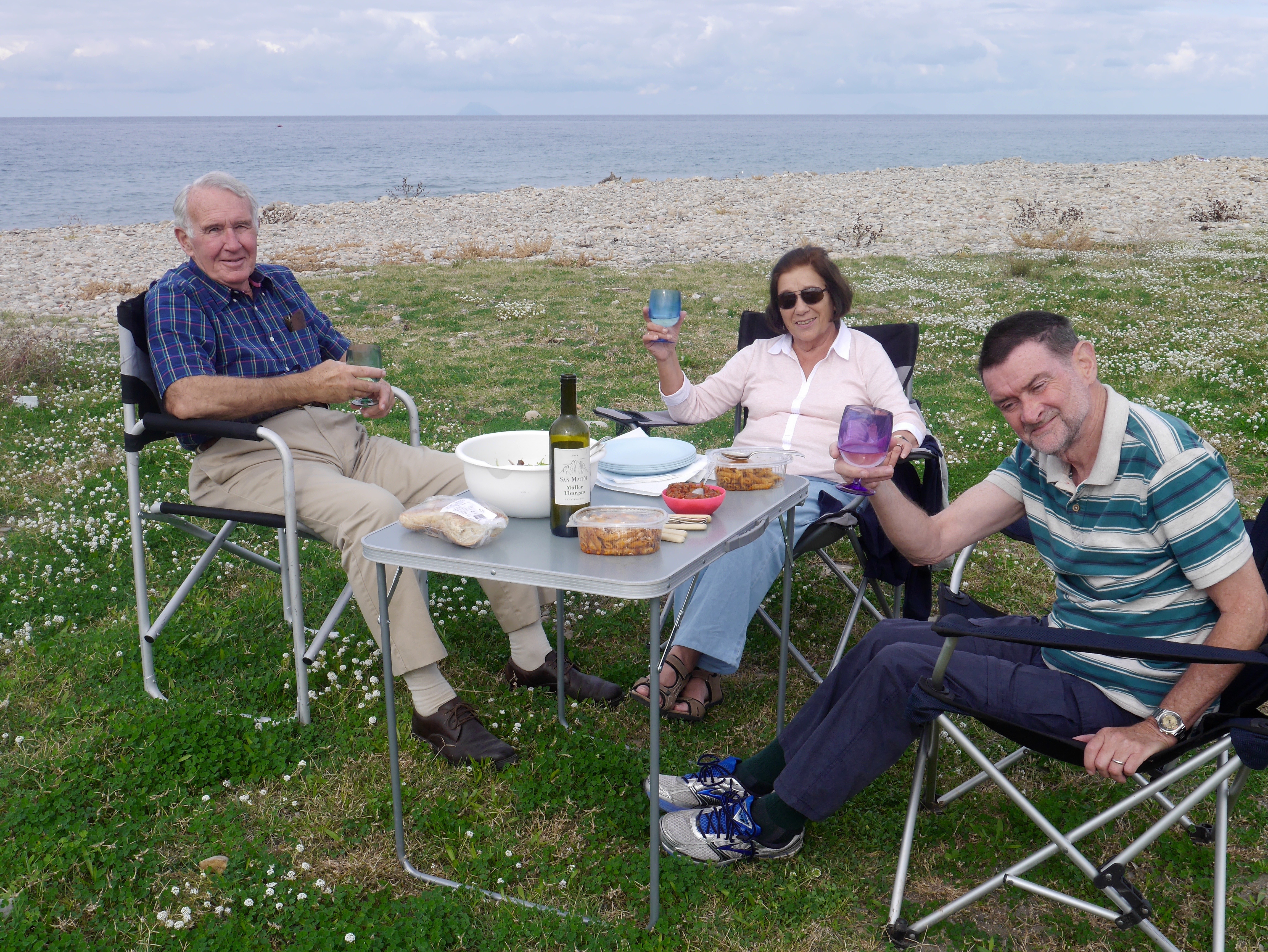We had identified a ‘parking’ area for the night but upon arrival, decided it was a bit lonely. Our second choice was a large parking area – part tarmac part grass – near the Greek ruins. We stretched our legs for an hour – and repaired to a local cafe for a glass of Vino Bianco. The staff arranged us in leather armchairs in front of a real log fire – it could have been a ‘Rothbury’ fire – K’s home. Refreshed, we returned to our van.